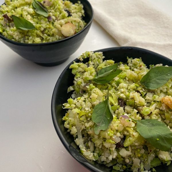 O nome arroz surge devido a textura granulada que a couve flor e brócolis ganham aos serem processador crus. A partir daí, o tempero é o que vai transformar esse preparo em algo mais especial.