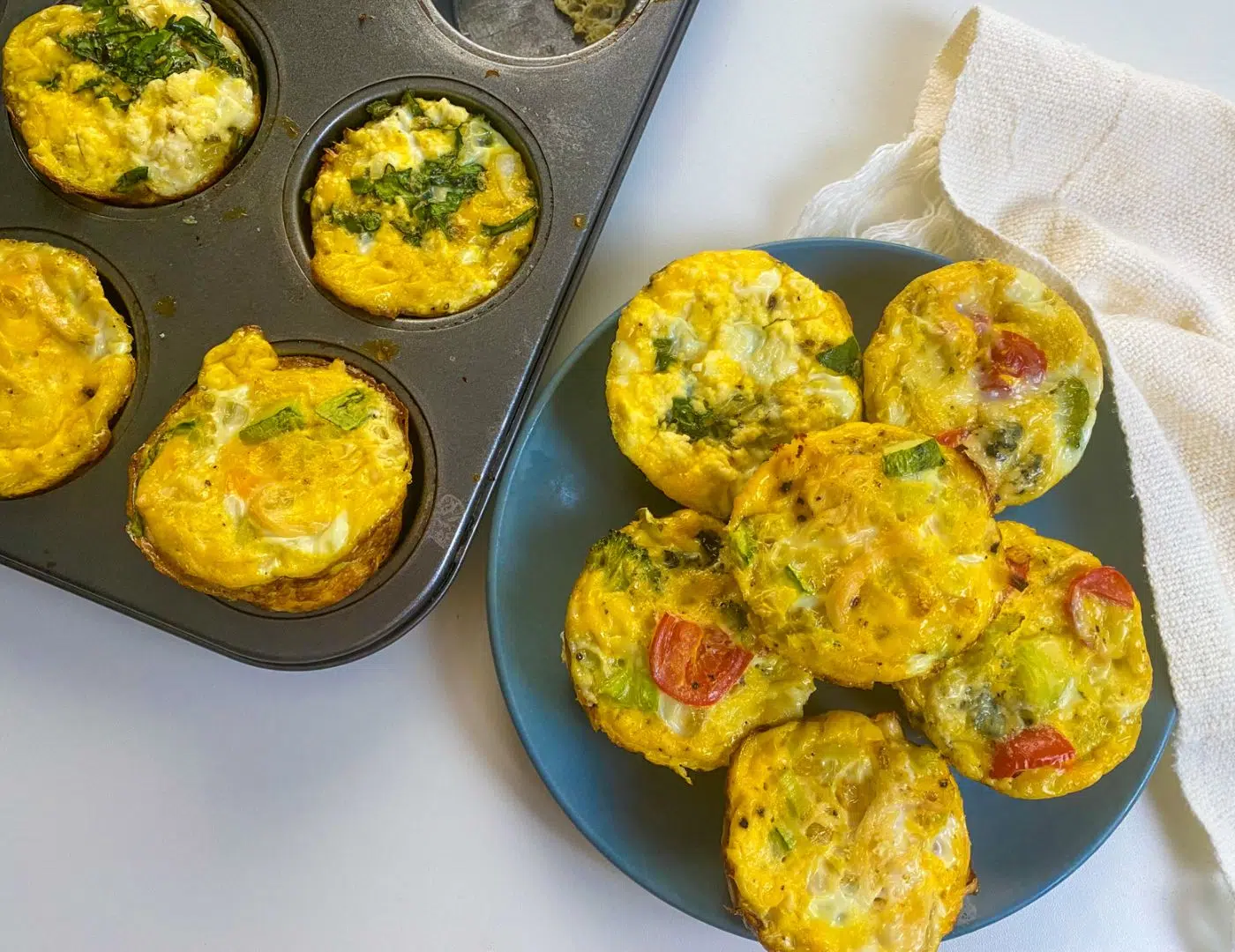 Mini omeletes ou muffins de ovos é um café da manhã fácil e super completo. Garantimos logo cedo uma boa dose de vegetais e proteína. O melhor desta receita é que você pode fazer uma boa quantidade e ir aproveitando ao longo da semana, com tranquilidade. Vou dar a sugestão de 3 sabores com muitos vegetais.