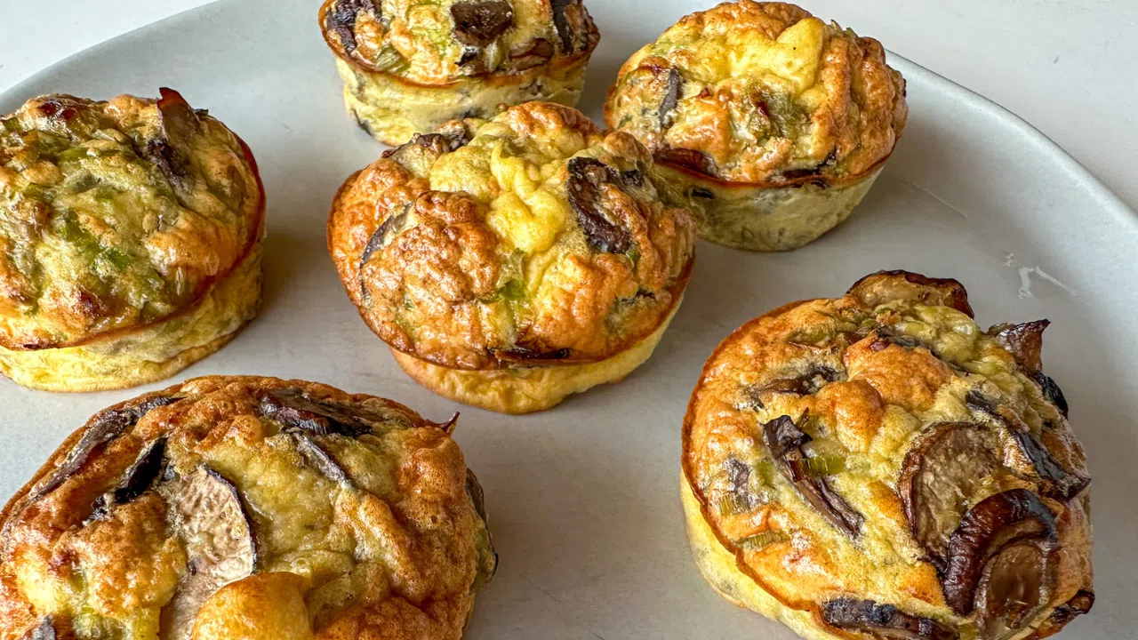 Muffin de cogumelos e alho poró é uma opção perfeita para o lanche da tarde. Pode ser congelada ou consumida na hora. Lanche saudável prático e fácil, feito com ingredientes naturais