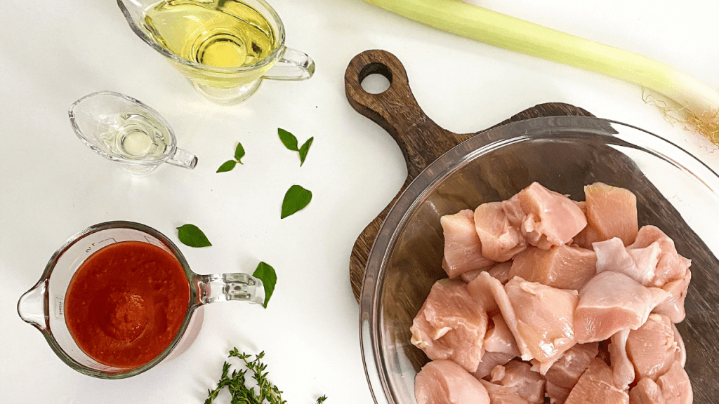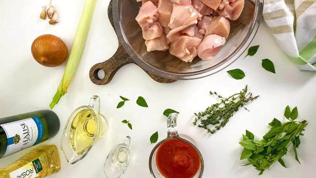 Este é um ensopado de frango especial. O tomilho, que é uma erva muito aromática e o vinho branco formam uma dupla capaz de transformar este ensopado em um prato requintado.