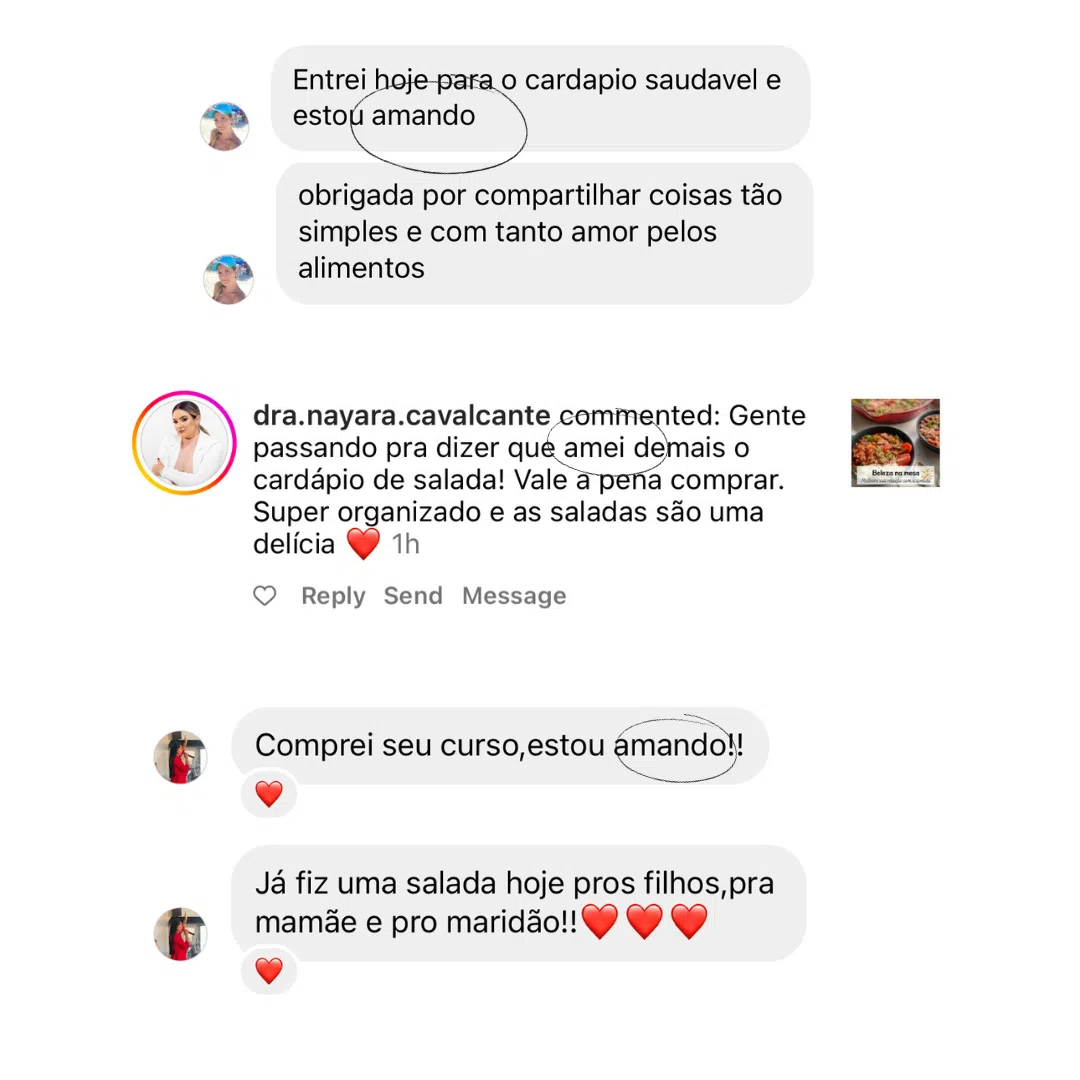 É gratificante saber que consigo modificar a sua forma de enxergar a vida saudável através do meu trabalho. Tenho certeza que você se sentirá encantada com a nova vida que vai construir para si e desejo muito sucesso e alegria na sua jornada da vida saudável