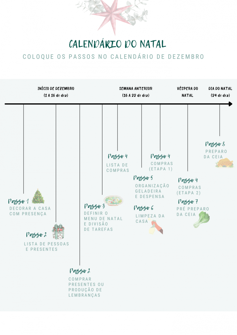 Parte 1: Você tem acesso ao guia do natal organizado. Você terá um passo a passo para seguir e se planejar para evitar correria e stress. Você vai planejar as atividades com antecedência!