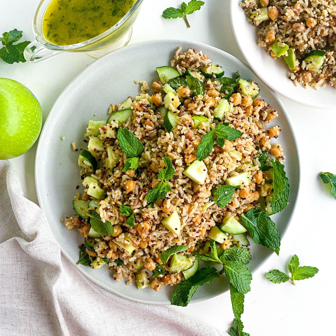 Salada multigrãos refrescante com molho de hortelã