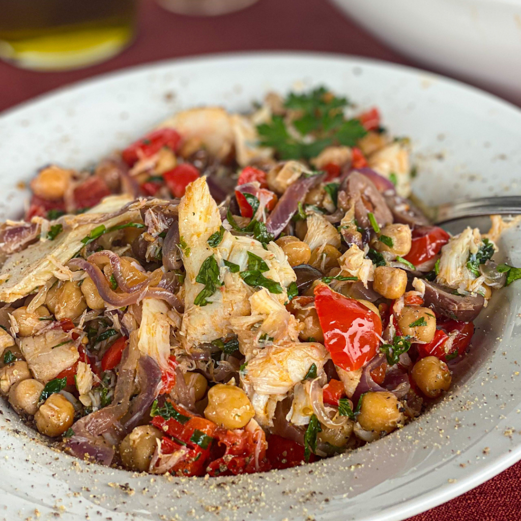 Salada de bacalhau com grão de bico