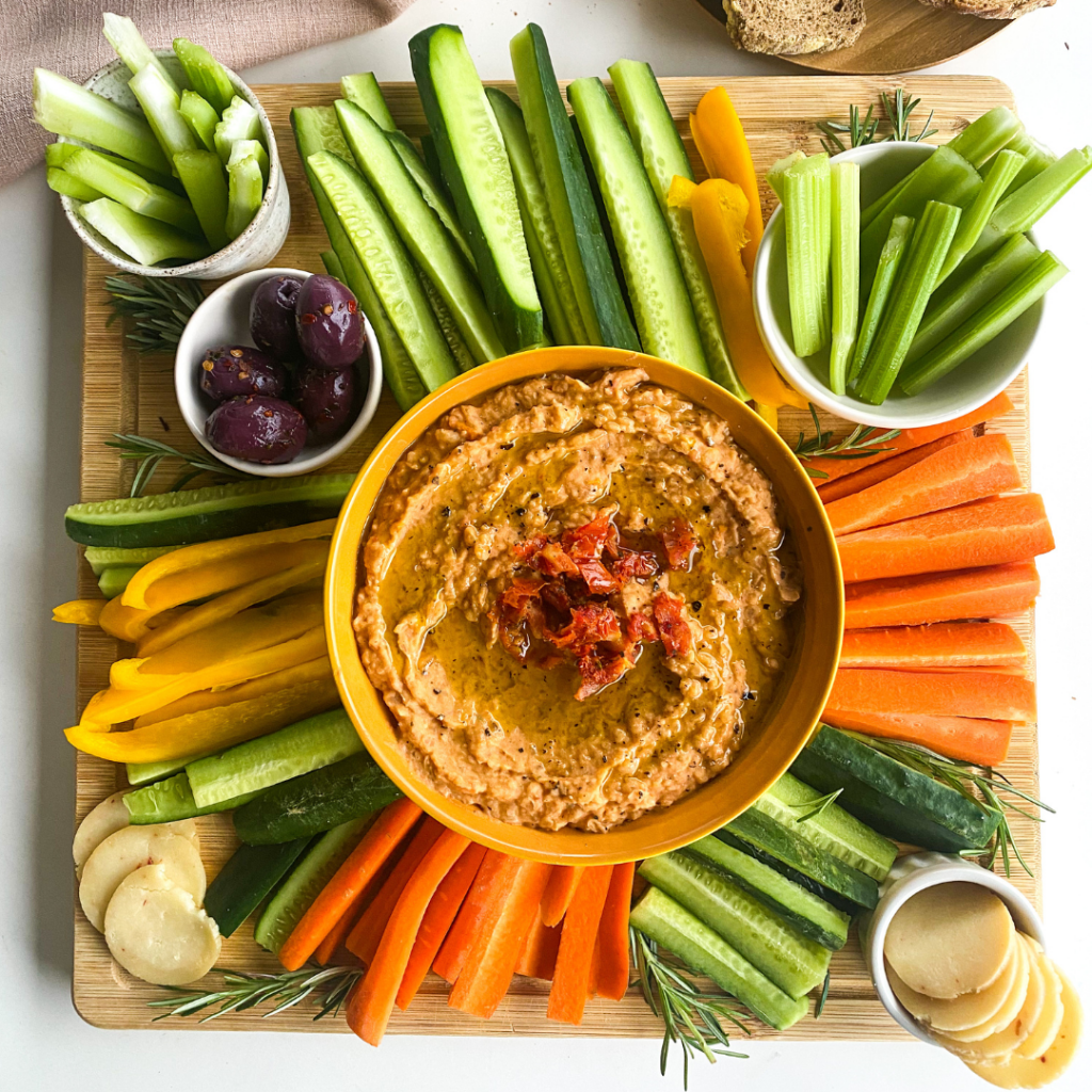 Crudités de vegetais e patê de tomate seco