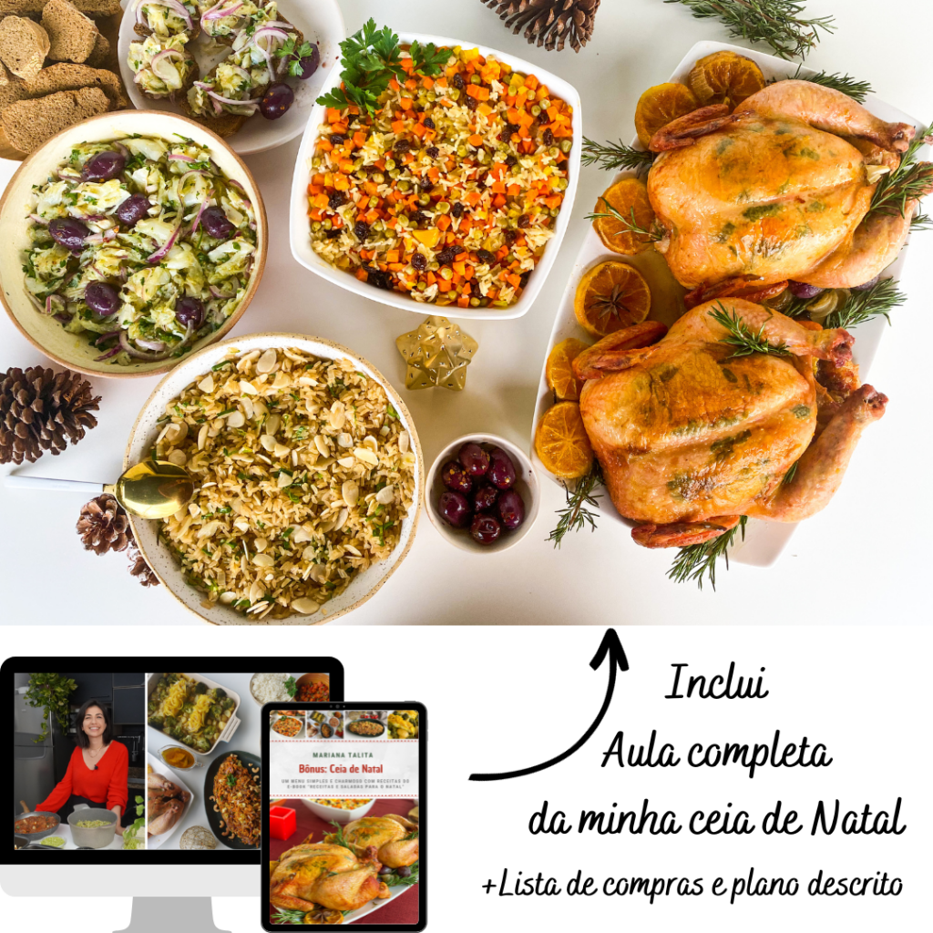 Eu faço contigo! Receitas do livro servidas em uma ceia completa – ensinadas em vídeo aula comigo na cozinha.