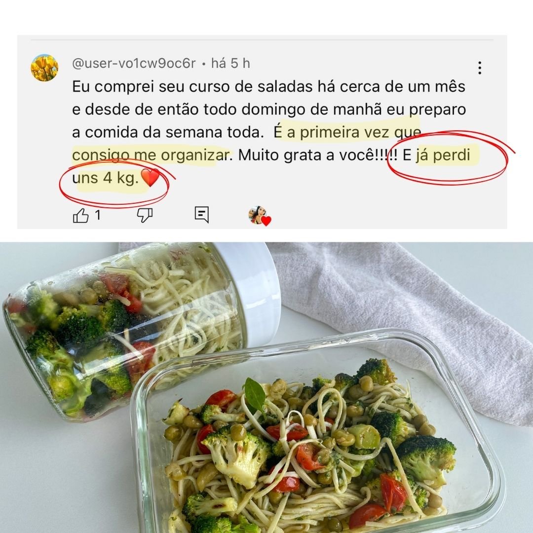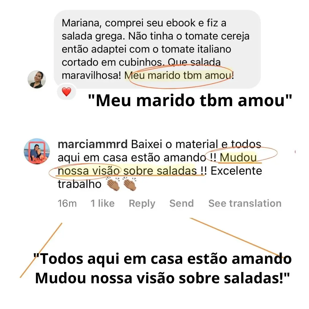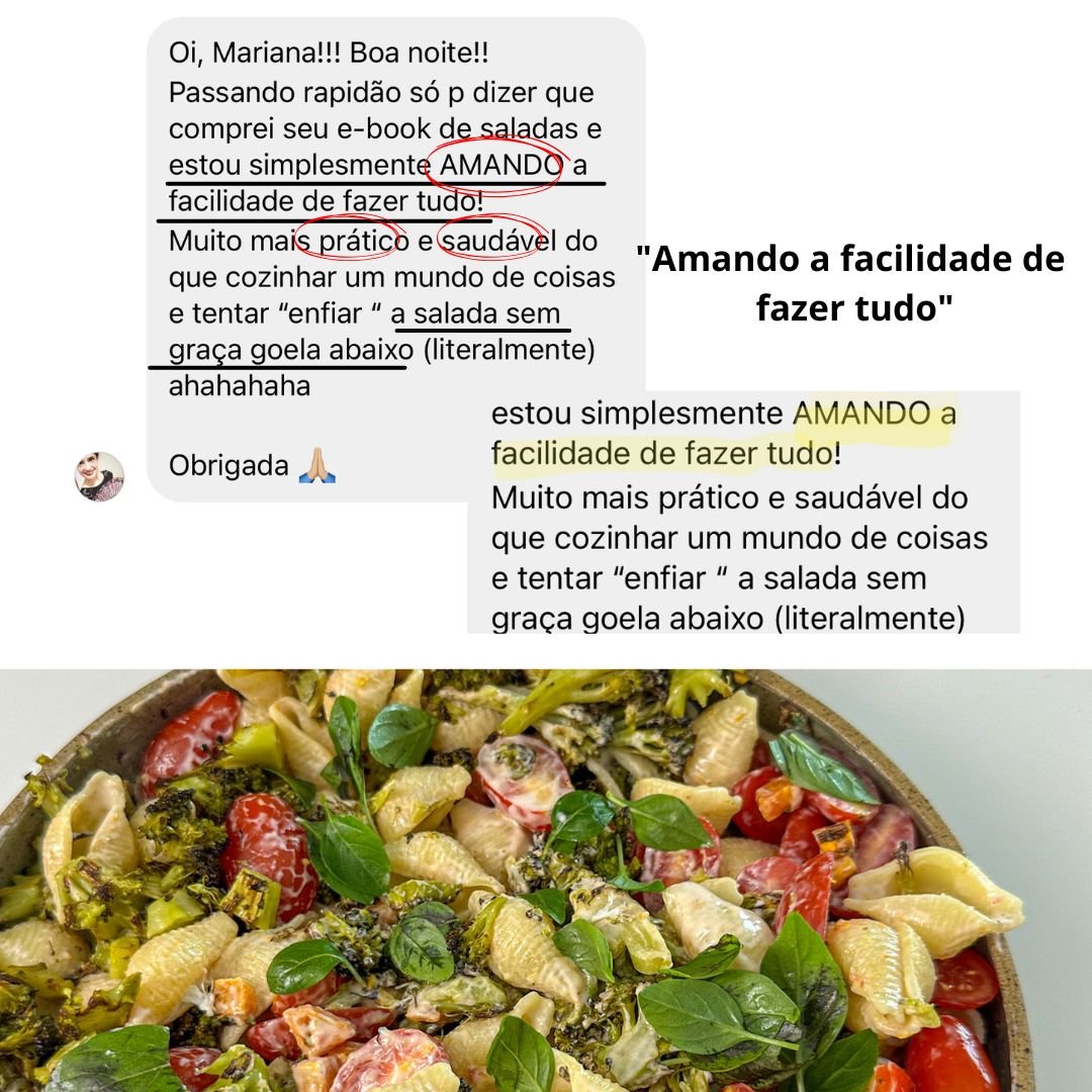 A grande maioria das receitas pode ser feita com substituições e logo na primeira parte do e-book você vai aprender o método “camada a camada” que te ensina a substituir ingredientes caso não encontre algum. – Com o e-book é natural ganhar autonomia e confiança para criar saladas gostosas com o que tem em mãos.