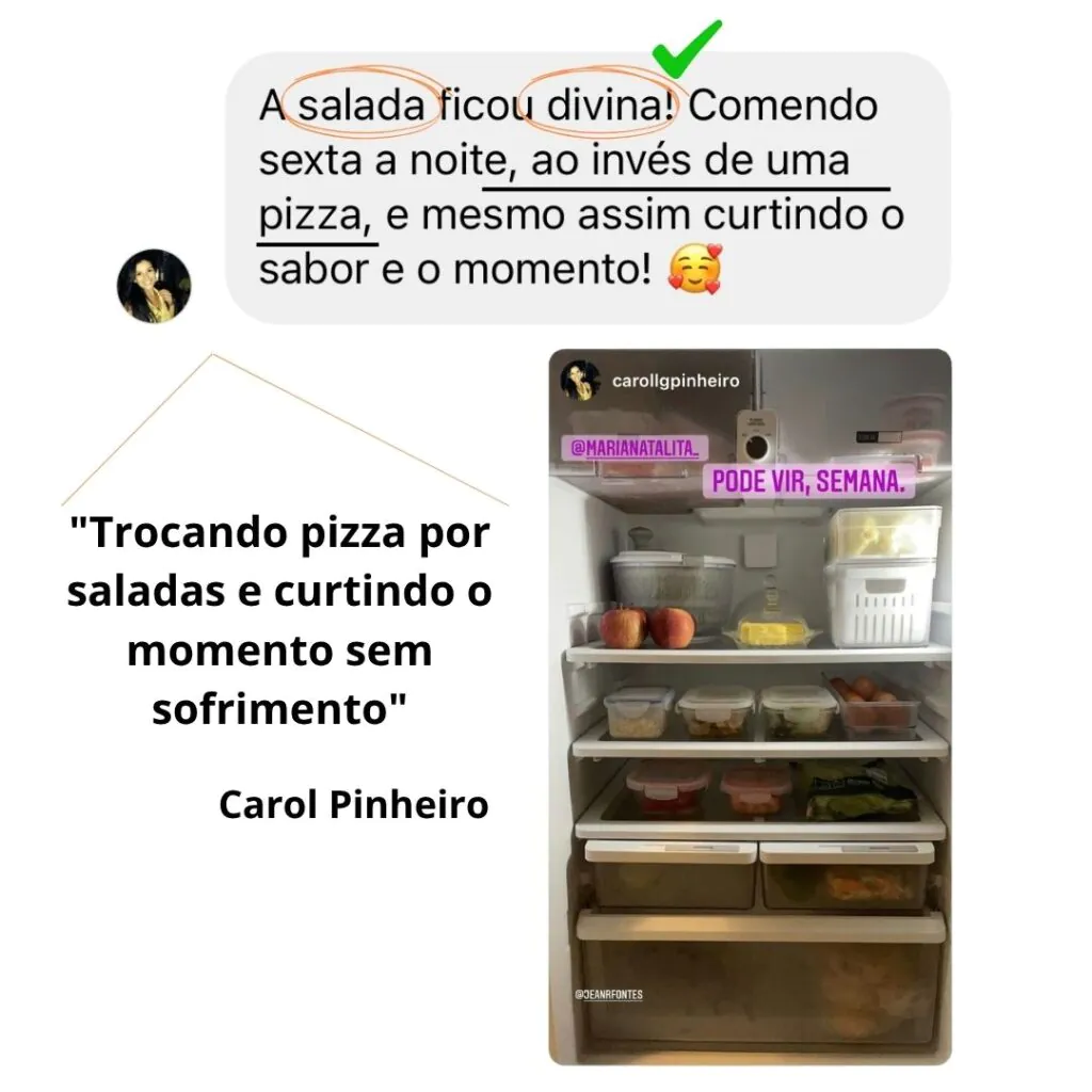 E foi aí que desenvolvi apliquei e testei a metodologia do saladas gostosas para o dia a dia. Passei a criar receitas saborosas baseadas em vegetais e ingredientes saudáveis e tê-los organizados na minha rotina.